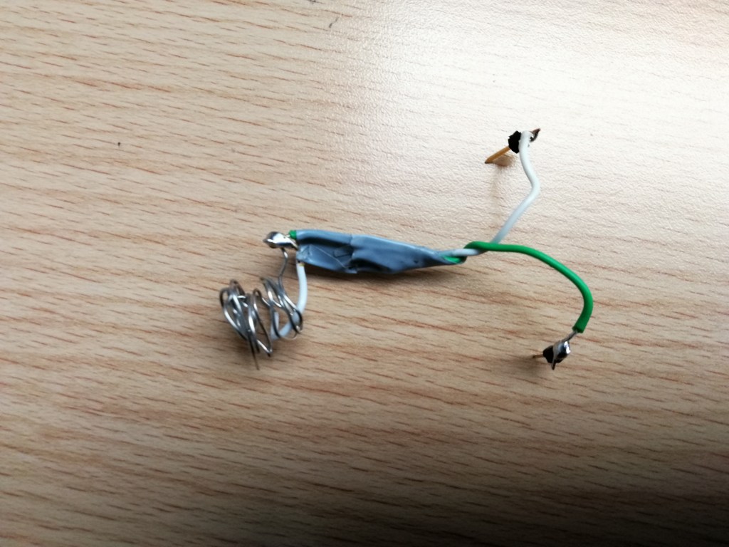 There was some trial and error improved on the design of the switch to make it work best. For example if the gap between the wires was to big it didnt always trigger. If to small it could trigger prematurly. We tapped the wires together as you can see this helped give it a bit more structural integrity so it wouldn’t trigger accidentally. We also had to strip a larger length of the wire and make it into a make-shift coil to increase the Size of the contact area making it more reliable for tipping the can from wider angles than other wise.