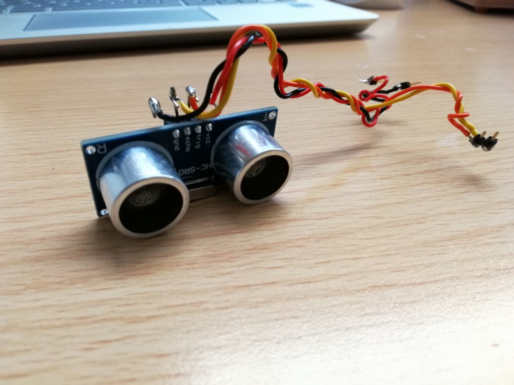 We are now attempting to integrate an Ultra-Sonic sensor to our system to allow it to read distance(s). This is very useful as it gives us a all be it very limited ability to ‘see’ what is ahead. The sensor is a HC-SR04, shown below, it has a transmitter and a receiver or trigger and echo.