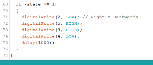 Sincew we got the one motor working we then moved on the implementing the second and using the #define functionality. RFWD = Right Forward & LREV = Left Reverse, etc.